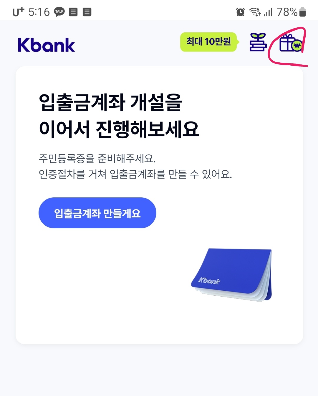 케이뱅크 설치 및 계좌개설을 하기 전에 알아야 할 부분이있습니다. 케이뱅크 계좌가 있는 친구에게 공유를 하게되면, 친구와 내가 각각 상자 1개씩을 받습니다. 여기서 주목해야 될 점은 케이뱅크 계좌가 없는 친구에게 공유를 하고 그 친구가 계좌를 처음으로 개설을 한다면 각각 행운상자 100개씩을 받을 수 있습니다.