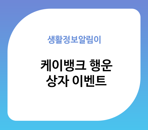 100% 당첨 보장되는 케이뱅크 행운상자는 케이뱅크 앱에서 진행하고 있는 이벤트입니다. 상자를 친구에게 공유만 하면 상자를 얻을 수 있는데, 상자를 열면 바로 케이뱅크 계좌로 현금이 지급됩니다. 참여하시고 돈 받아가세요!